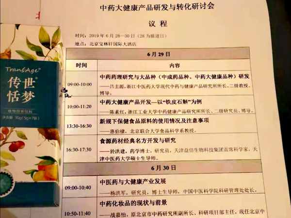 2019年6月29-30日,“中药大健康产品研发与转化研讨会”在北京宝林轩国际大酒店举办,本次会议由大品种联盟科技举办,邀请到中医药类大健康产品立项、研发、产业化等领域的专家,针对中药资源利用、中药方剂开发等领域,如何发掘名老中医可开发的有效方剂,通过哪些技术手段解决中药类的感官体验,中药类保健品趋势如何,中药类食品如何研发,如何从市场角度评估哪类产品值得开发等系列问题值得深入探讨。益倍生物首席科学家於洪建博士受邀出席并做题为“食源药材经典名方的开发与研究”的报告。