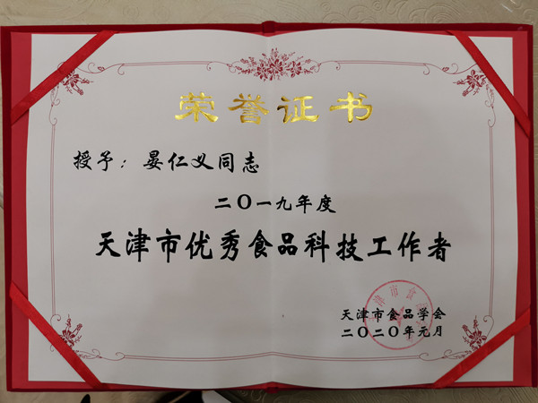 益倍生物科技集团下属子公司天津市康世生物技术有限公司荣获”2019年度天津市食品安全与质量优秀企业“,李赫宇总经理荣获”天津市优秀食品科技管理者“,晏仁义博士荣获”天津市优秀食品科技工作者“称号。