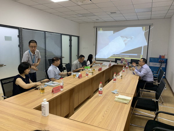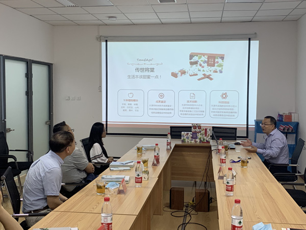 会议中,於洪建博士向盛站长一行介绍了益倍集团的研发基础与发展历程,并向其详细讲解了助眠、降尿酸、降糖、护肺、抗痛风等典型产品的开发流程。后续,与会双方就香蕉花提取物等原料的市场化、产业化进行了讨论,为双方在后期多方面的深入合作奠定了良好的基础。