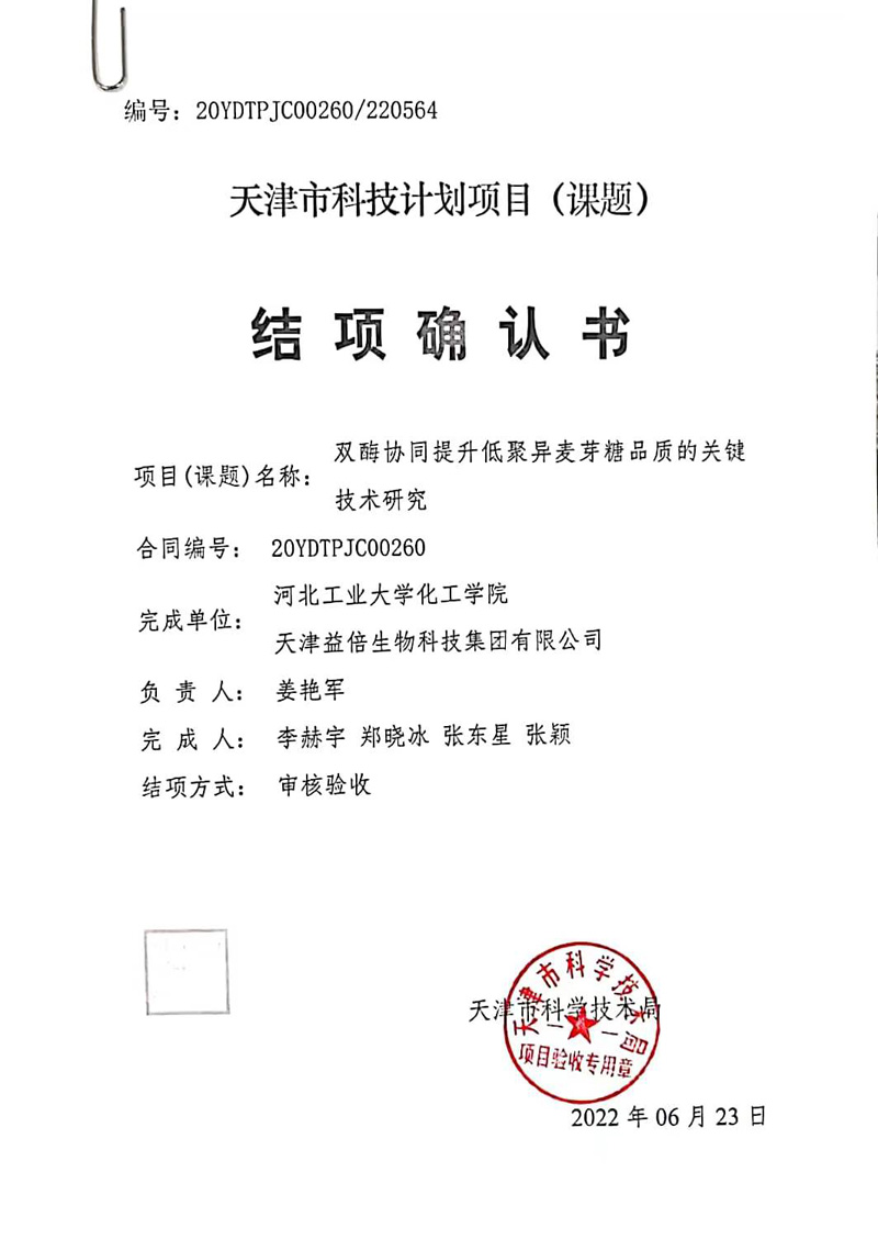 近日,由益倍生物联合河北工业大学化工学院、天津现代职业技术学院生物工程学院的两项天津市科技计划项目(课题)顺利完成项目结项,并取得结项确认书...